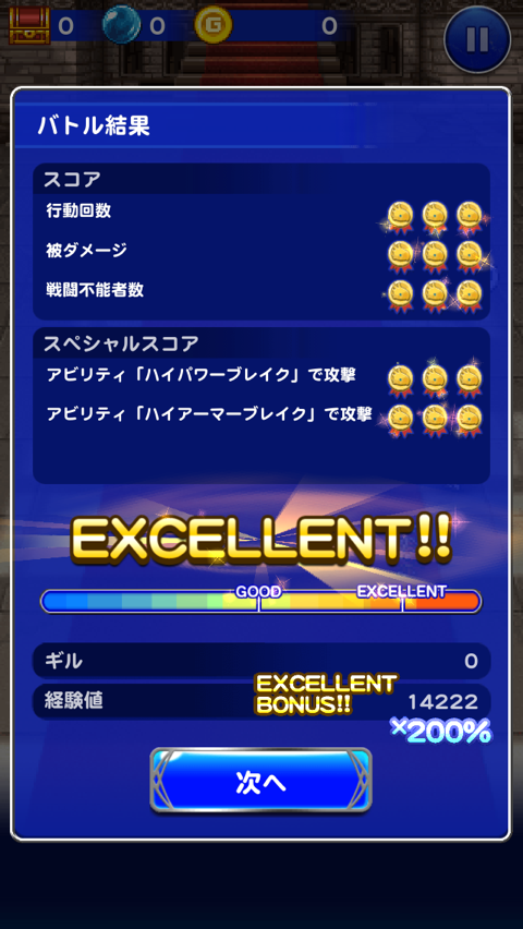 鉄壁なしで行ったら被ダメがキツくて、ジタンが戦闘不能になったけど、
