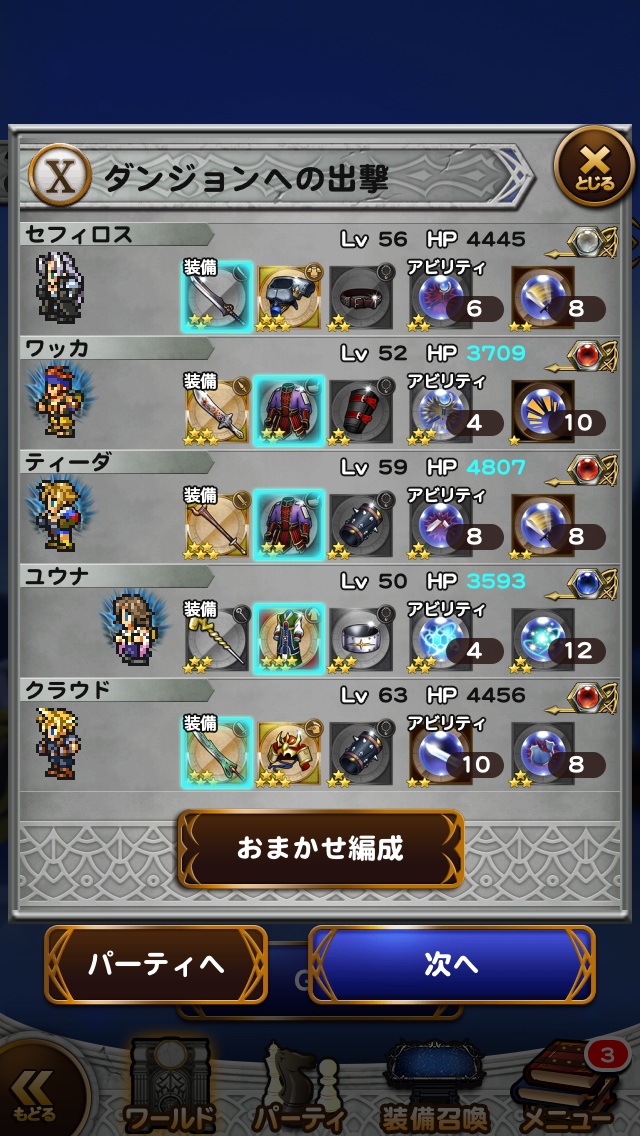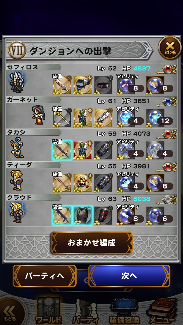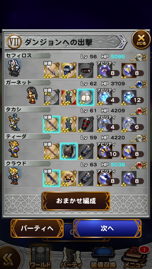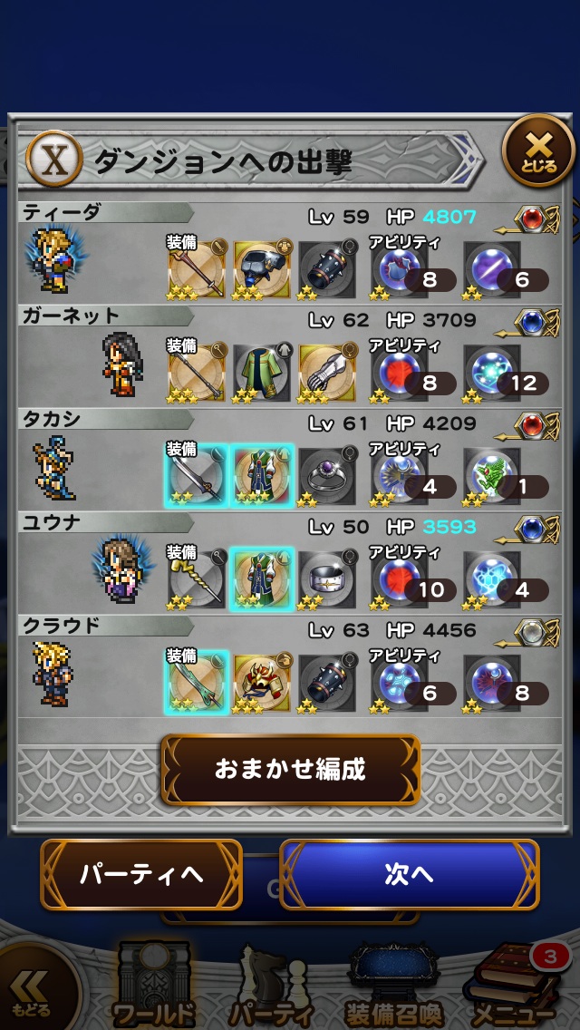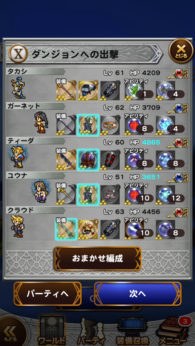 このレベルのメンバー、この装備、このレコードマテリアがないと道中もきつかったな・・・。