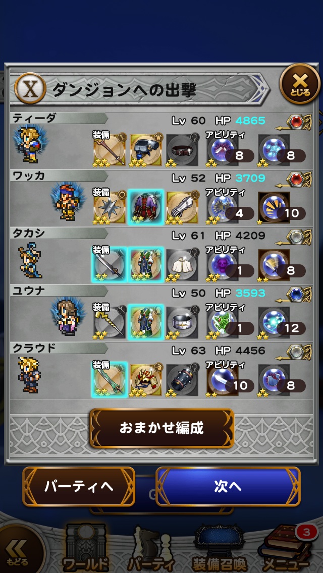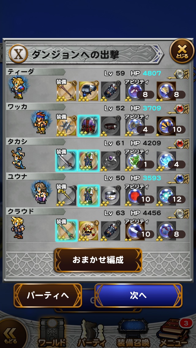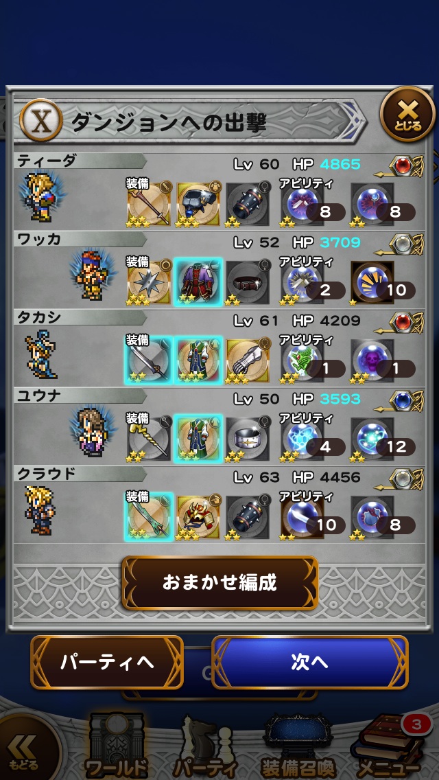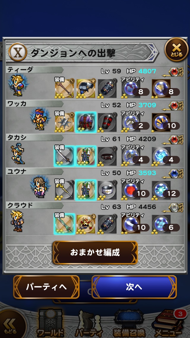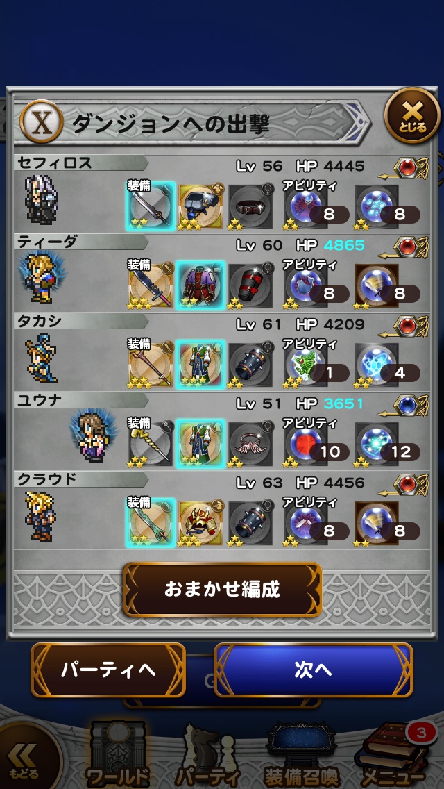 このレベルのメンバー、この装備、このレコードマテリアがないと道中もきつかったな・・・。