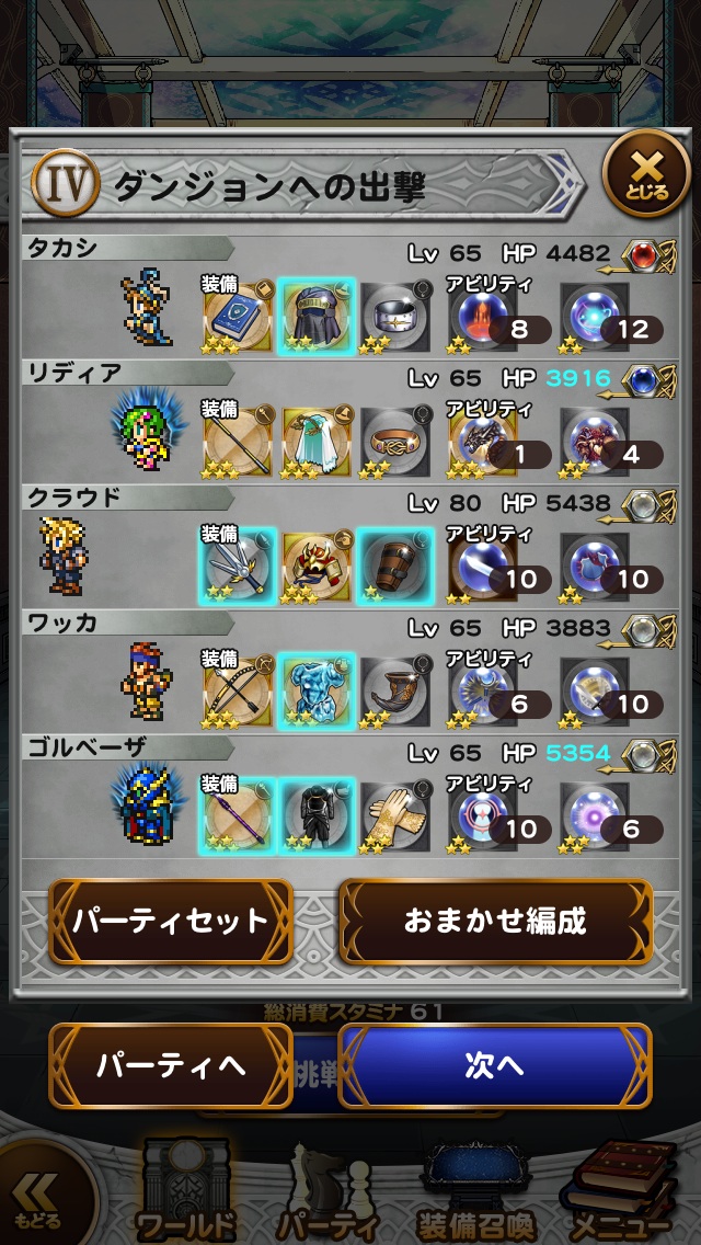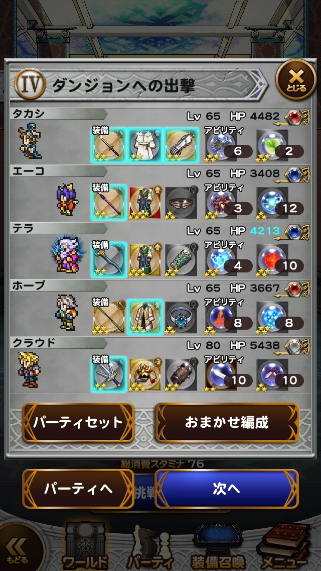 ☆レコードマテリア■暗黒セシル・・・ソルジャーの一撃■スコール・・・みやぶるⅡ■聖セシル・・・速攻■ガーネット・・・いやしの■カイン・・・自己犠牲