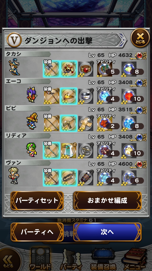 ■レコードマテリア☆主人公・・・魔晄の力☆エーコ・・・精神統一Ⅱ☆ビビ・・・魔力の泉Ⅱ ☆リディア・・・召喚の泉Ⅱ☆ヴァン・・・ 連続HIT