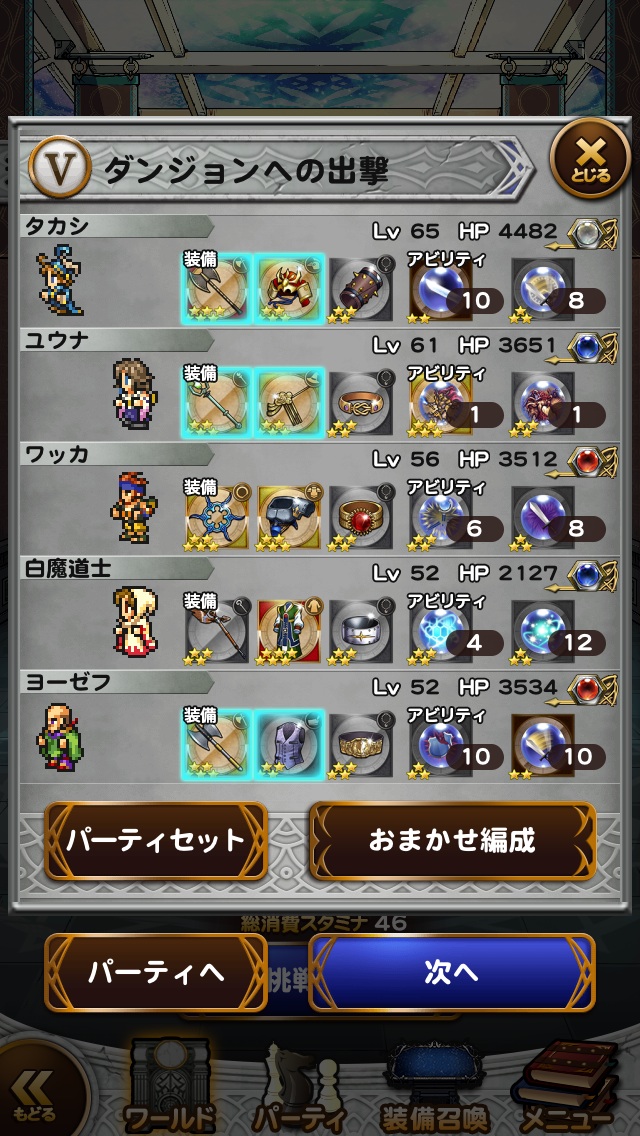 ■ユウナ・・・召喚の泉Ⅱ■ワッカ・・・連続HIT■白魔導士・・・精神統一Ⅱ■ヨーゼフ・・・みだれうちチャンス☆必殺技変更■ワッカ・・・マインドアップ■白魔導士・・・スピラの祈り☆フレンド召喚■グッドタイム