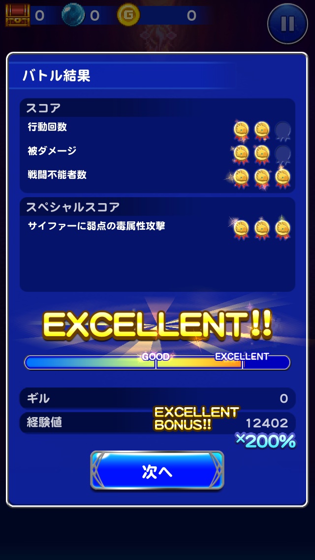 メイルシュトロームを2回くらって苦戦するも、なんとか戦闘不能なしで撃破!