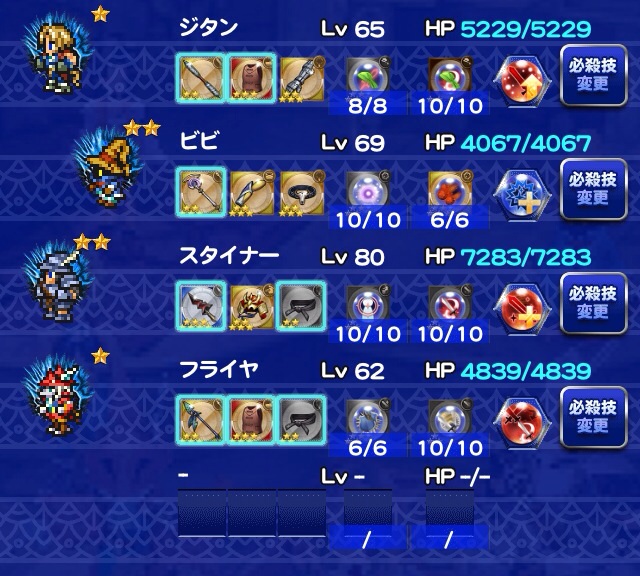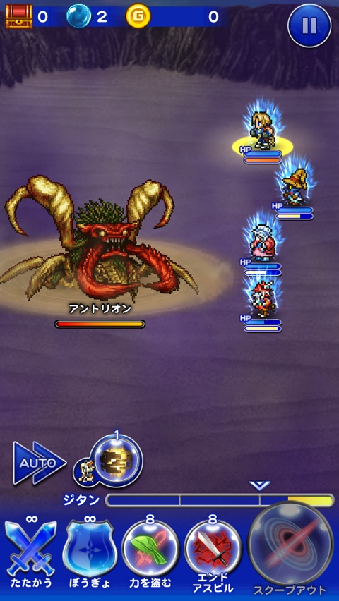 ☆ジタン・・・力を盗んでHPを盗む、スクープアウト