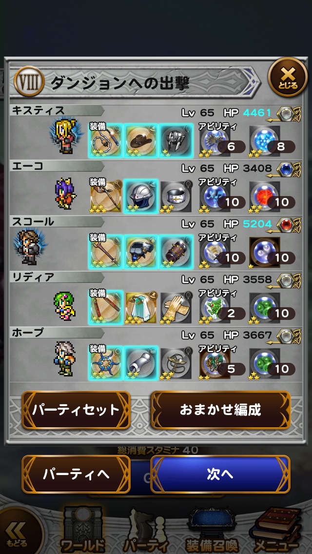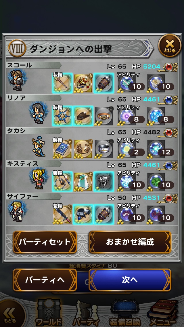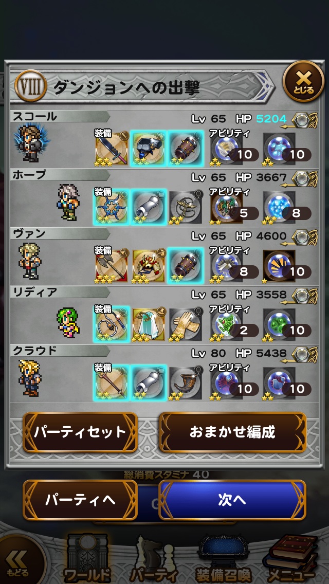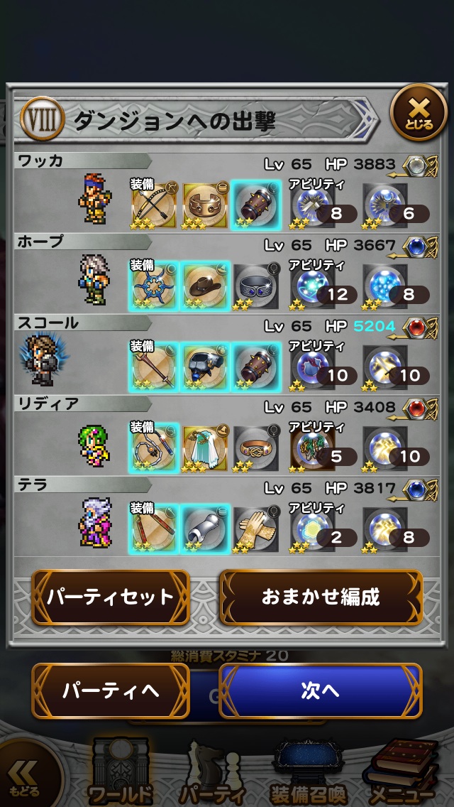 今回はスコア条件のスコール以外ジョブキャラにして挑戦!