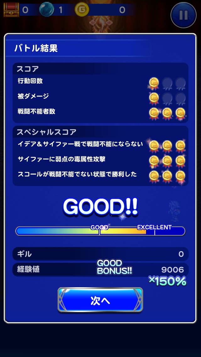 1回目はふたり戦闘不能でノーマルクリア、