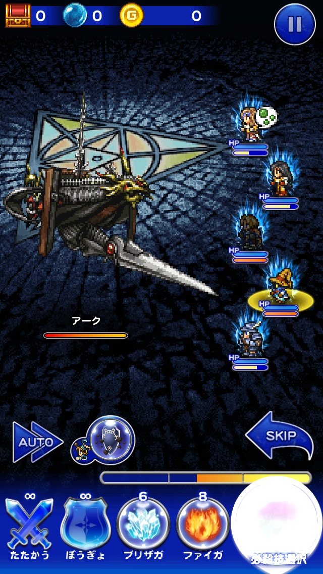 そしてジタンは光の力でたたかう攻撃し、HPが減ったらHPを盗むを使いつつ、かまいたちやスクープアウトで攻撃。